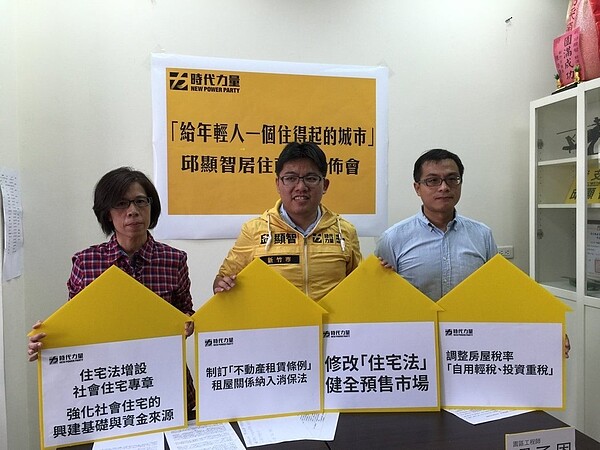 時代力量新竹區參選人邱顯智今天提出四項居住政策,希望還給年輕人一個住得起的國家。(記者郭政芬/攝影)
